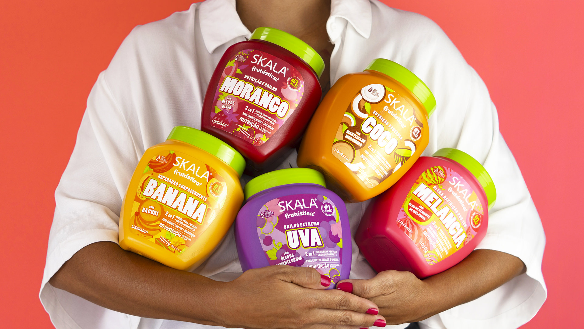 O design da linha Skala Frutástica foi construído a partir de uma linguagem visual proprietária, com ilustrações autorais, tipografia expressiva e uso ousado de cores vibrantes e contrastantes. O resultado é uma estética energética, afetiva e contemporânea, que traduz brasilidade sem recorrer a estereótipos.